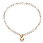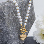 Timeless pearls meet golden charm in the Sweetheart Necklace. This elegant piece features a string of faux pearls paired with a gold heart pendant and a toggle clasp closure, which ensures a secure lock system. It’s delicate, romantic, and perfect for adding a soft touch to any outfit. Made with high-quality stainless steel and finished in gold plating for long-lasting shine and durability.