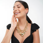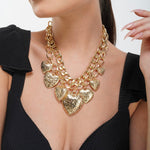 The Lovestruck Necklace is a bold statement of love and style. Featuring two attached gold-plated chains crafted from high-quality alloy, this statement piece is adorned with detailed chunky heart charms. This necklace adds a dramatic yet dreamy touch to any outfit. Even when worn solo, it’s made to steal hearts.