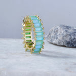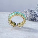 This ring has soft mint green stones that looks cool and fresh. It’s simple, pretty, and easy to wear every day. You can wear it alone or stack it with other rings.