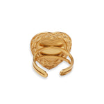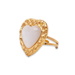 Midnight Galaxy Ring draws inspiration from the deep, mysterious beauty of the night sky. This bold heart-shaped ring features a glossy synthetic gemstone set in a textured gold-toned frame.