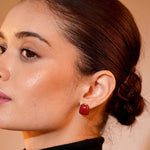 A timeless pair featuring smooth burgundy cushion centres framed in gold toned detailing. Compact, simple, and easy to carry, the Adeline Studs add a refined pop of colour to both everyday and occasion looks.