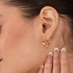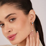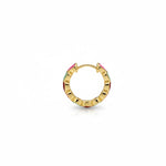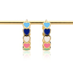 Confetti Huggies come with colourful enamel hearts placed all around a sleek gold toned hoop, giving a bright pop of colour from every side. Made from stainless steel with gold plating, they are light and comfortable for daily use. The secure click lock closure keeps them firmly in place.