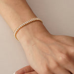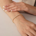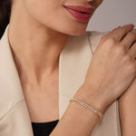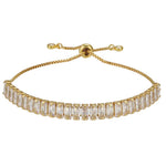 The Moonline Bracelet is inspired by the soft glow of the moon. Its shiny gold design and bright artificial gem stones create a calm, elegant look. Each stone reflects light like moonbeams. The adjustable slider clasp ensures a secure and comfortable fit for all wrist sizes. Whether worn solo or stacked, this bracelet is your go-to choice for uplifting everyday looks or brightening up evening attire.