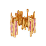 The Strawberry Swirl Ring has fun gold shapes that look like drips, mixed with strawberry pink. It’s bright, playful, and adds a sweet pop of color to your look. Great to wear