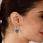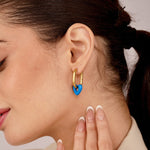 Inspired by the bright blue shade of a clear sky, the Azure Hoops come with a smooth enamel heart charm paired with sleek gold toned hoops for a fresh, modern look. Made from stainless steel with gold plating, they are light, comfortable, and fun to wear.