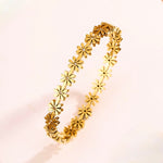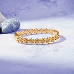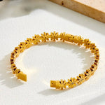 Delicately crafted with daisy-inspired floral motifs and diamond-studded stones, this lightweight bangle provides an easy lock system for secure, hassle-free wear.