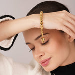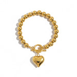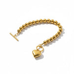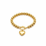The Heartlet Bracelet features polished gold beads with a cute drop-style heart charm that hangs softly from the centre. Made with gold plating on stainless steel, it comes with a classic toggle lock that adds both style and ease of wear. Simple, sweet, and perfect for stacking!