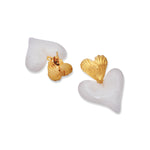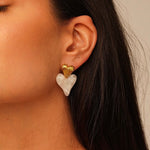 Muse of Love earrings are designed to stand out with their bold heart shape and elegant finish. The top heart has a gold-plated, textured design, while the bigger heart below is made of glossy resin that catches the light beautifully.