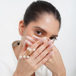 The Chantelle Ring is big, bold, and beautifully designed with a cluster of glowing pearls. Its striking size and elegant shape instantly make any outfit look more formal and classy. A perfect pick for when you want to make a graceful statement.