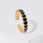 Inspired by the ancient symbol of balance, the Yin Yang Bands Set features two complementary enamel heart rings, one with deep black and the other with pearly white. Each band symbolizes the union of two contrasting yet complementary energies.